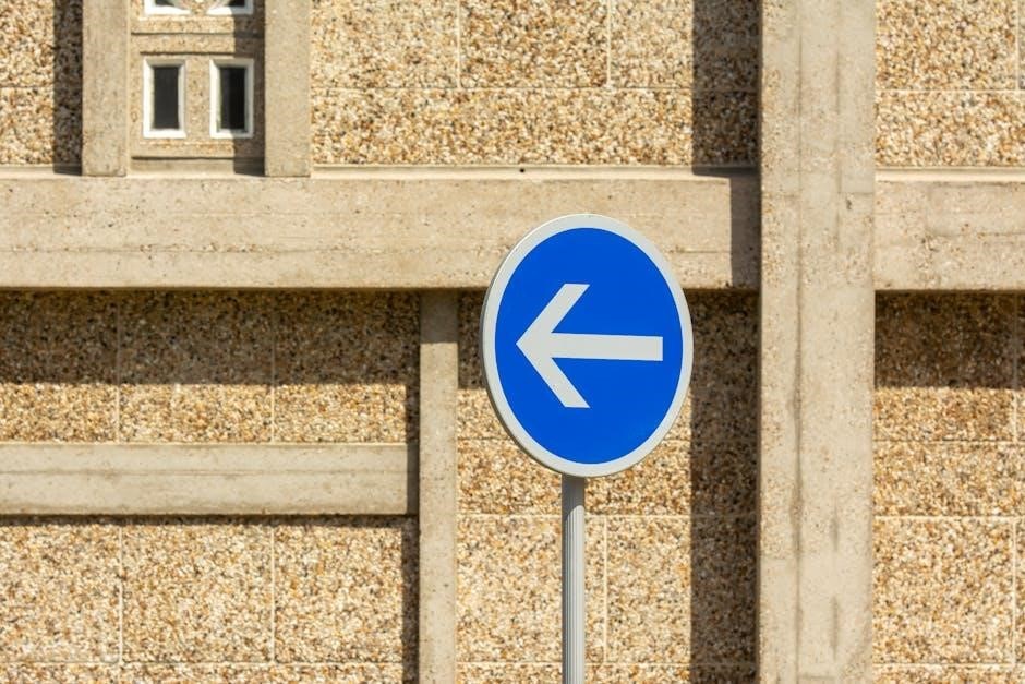 Compliance ensures orderly lane discipline‚ reducing congestion and enhancing safety. Ignoring these signs can lead to collisions or disrupt the intended traffic pattern. They often feature a black arrow on a white background‚ clearly illustrating the permitted maneuver. These signs are crucial for guiding drivers and preventing confusion‚ especially in unfamiliar areas.